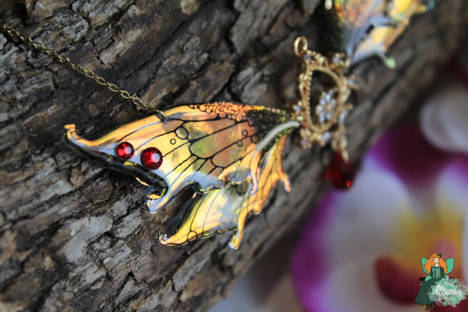 La Poussière de Fée crée d’incroyables reflets holographiques. Selon l’orientation des Ailes, les rayons de lumière solaire accrochent différemment et les couleurs changent et deviennent chatoyantes.  Leur procédé de confection reste secret, sinon, il perdrait toute sa magie !