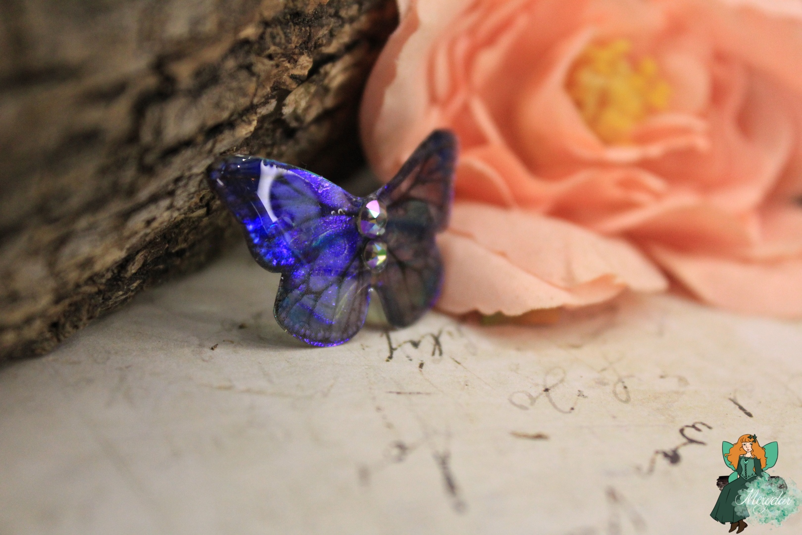 La Poussière de Fée crée d’incroyables reflets holographiques. Selon l’orientation des Ailes, les rayons de lumière solaire accrochent différemment et les couleurs changent et deviennent chatoyantes.  Leur procédé de confection reste secret, sinon, il perdrait toute sa magie !