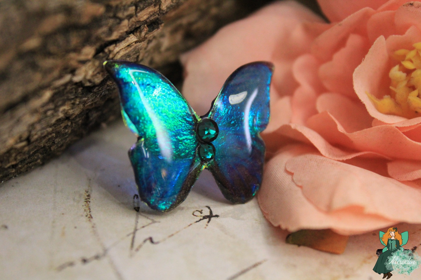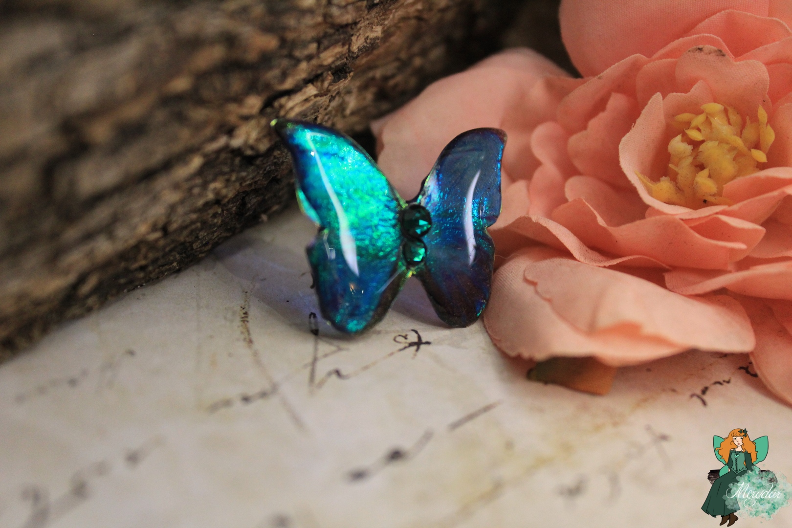 La Poussière de Fée crée d’incroyables reflets holographiques. Selon l’orientation des Ailes, les rayons de lumière solaire accrochent différemment et les couleurs changent et deviennent chatoyantes.  Leur procédé de confection reste secret, sinon, il perdrait toute sa magie !