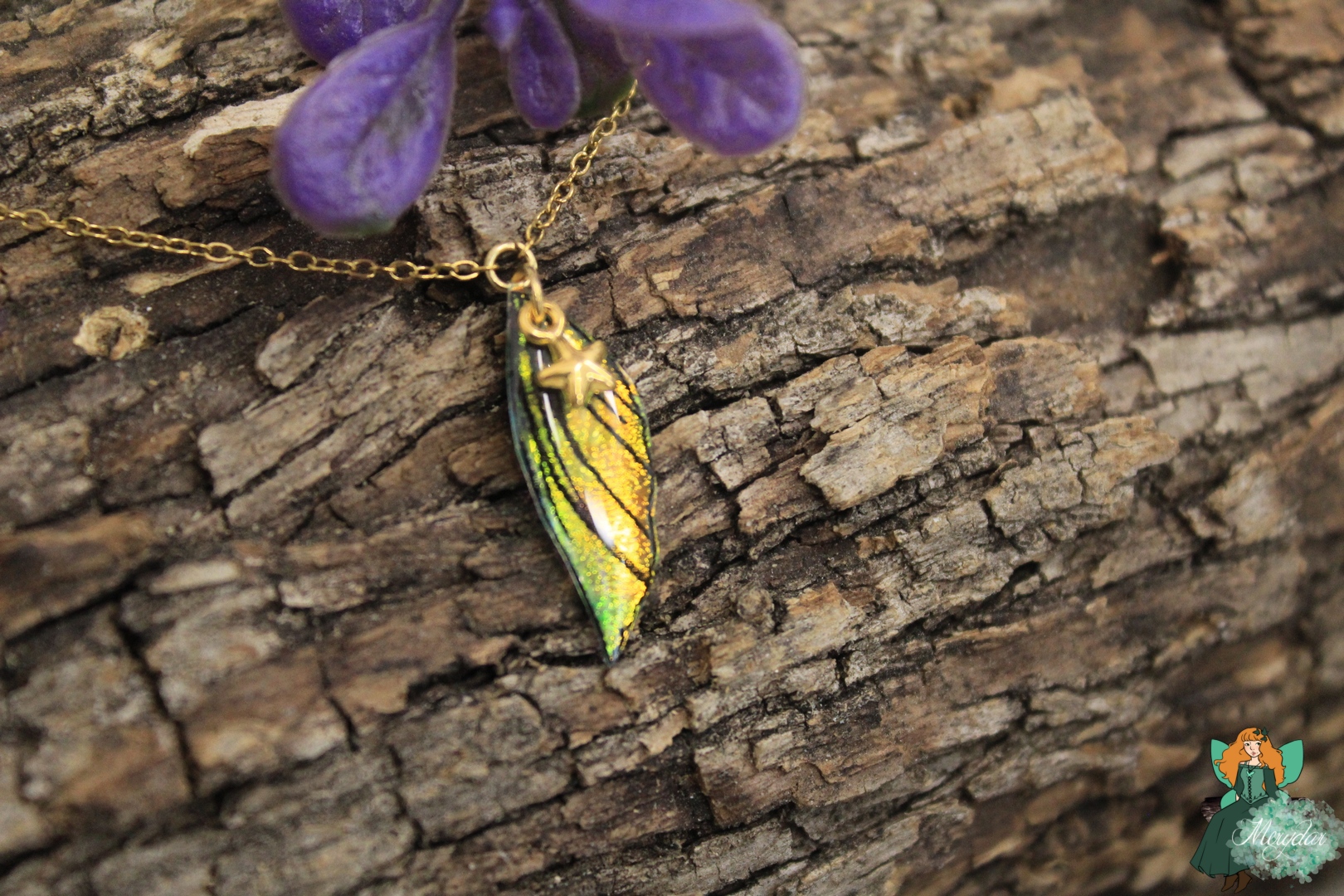 La Poussière de Fée crée d’incroyables reflets holographiques. Selon l’orientation des Ailes, les rayons de lumière solaire accrochent différemment et les couleurs changent et deviennent chatoyantes.  Leur procédé de confection reste secret, sinon, il perdrait toute sa magie !
