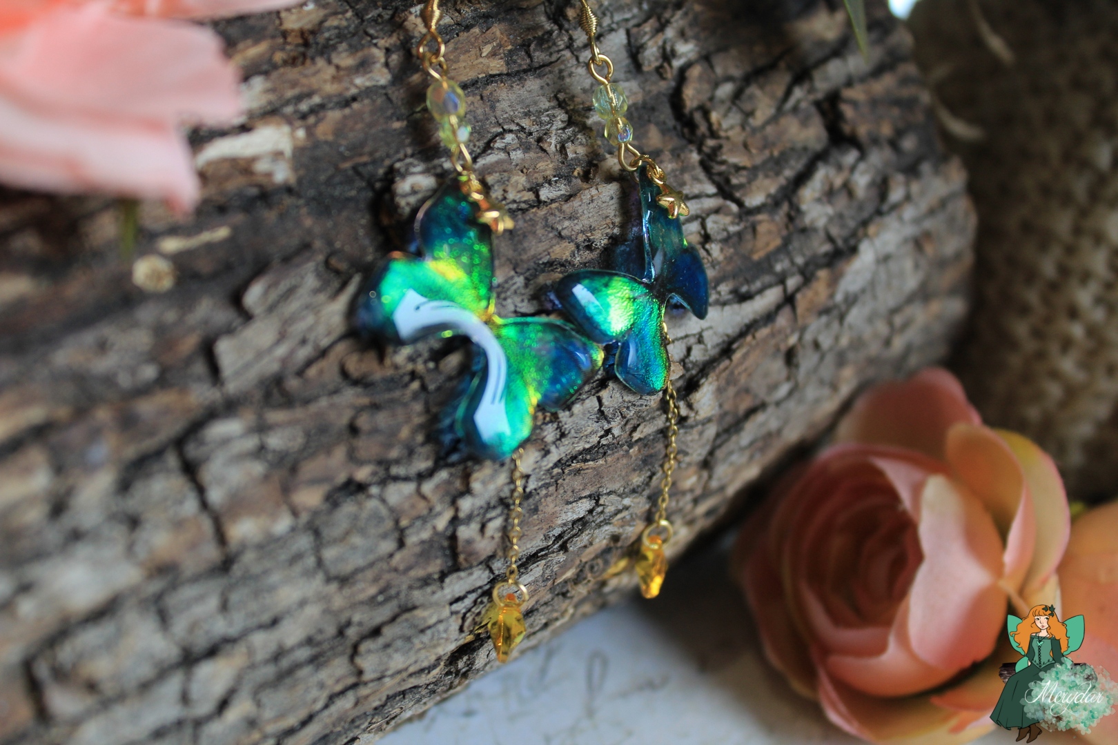 La Poussière de Fée crée d’incroyables reflets holographiques. Selon l’orientation des Ailes, les rayons de lumière solaire accrochent différemment et les couleurs changent et deviennent chatoyantes.  Leur procédé de confection reste secret, sinon, il perdrait toute sa magie !